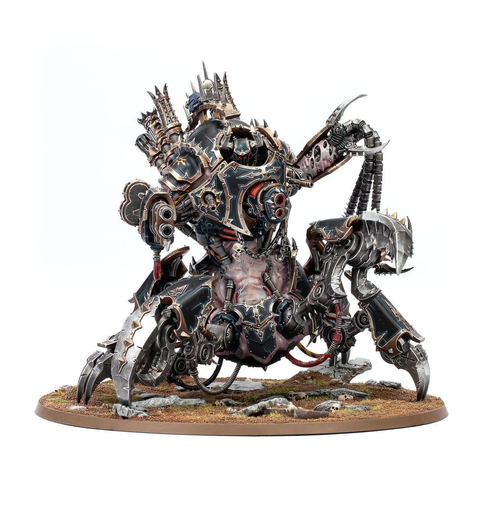 Defilers are Daemon Engines possessed by abominable entities – towering creations that stomp across battlefields on piston-driven legs, slaying enemies with claws capable of cutting a Space Marine in half. Foes are not safe at range either, as the Defiler inflicts a trail of carnage with its cannon and other heavy weapons.