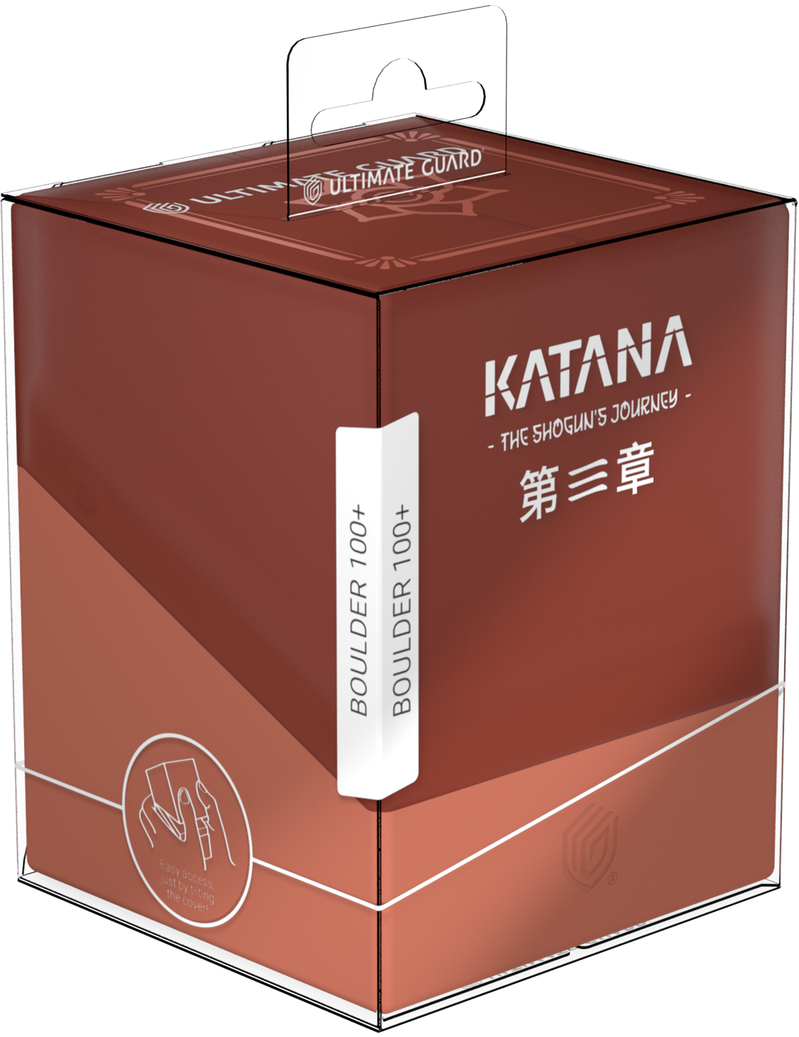 The Boulder 100+ from Ultimate Guard's "Katana: The Shogun's Journey" series is a durable and reliable deck box featuring our popular soft-touch surface. Despite its secure closure, the Boulder 100+ is easy and convenient to open and holds 100 double-sleeved cards in Ultimate Guard sleeves* from trading card games like Magic: The Gathering, Pokémon, Lorcana, Flesh and Blood, Yu-Gi-Oh!, and One Piece. Designed to combine with all Ultimate Guard mass storage boxes, these Boulder 100+ deck boxes perfectly fit into the Arkhive 400+ Xenoskin from the same series.