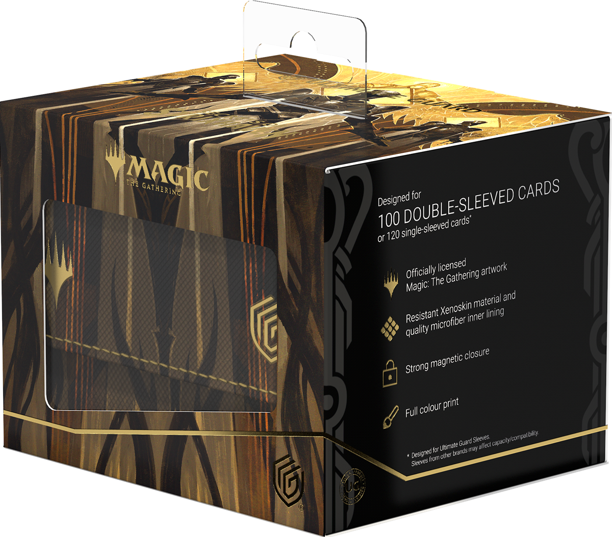Le Sidewinder 100+ Xenoskin est une boîte de deck TCG de haute qualité qui offre une protection premium grâce à son matériau résistant en Xenoskin, sa doublure intérieure en microfibre et sa fermeture magnétique solide, tout en offrant un accès facile et pratique au deck à l’intérieur. Les boîtes de deck sont imprimées en couleur avec des illustrations officielles sous licence du prochain coffret de Magic : The Gathering, « Secrets of Strixhaven ». Le Xenoskin Sidewinder 100+ est optimisé pour contenir 100 cartes double ou 120 cartes à simple pochette dans les pochettes Ultimate Guard.