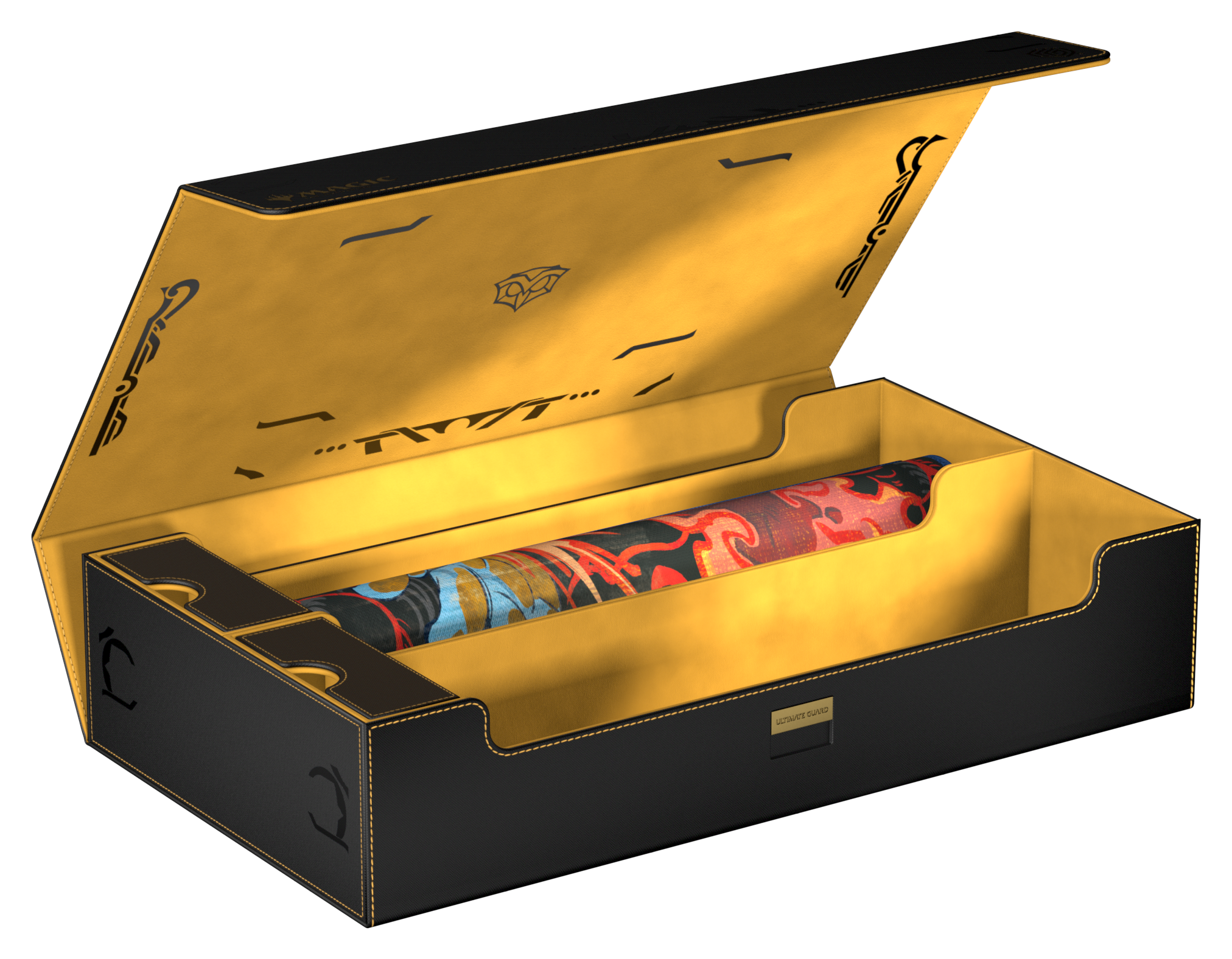 L’Omnihive 1000+ Xenoskin est conçu pour contenir plusieurs boîtes de deck, dés et/ou tapis de jeu simultanément grâce à deux plateaux magnétiques positionnés de manière flexible. Le boîtier du deck, fabriqué à partir du matériau populaire et résistant de Xenoskin et imprimé avec des illustrations officielles sous licence du prochain set de Magic : The Gathering, « Secrets of Strixhaven », est également le choix idéal pour stocker une collection plus large de cartes individuelles (jusqu’à 1000 cartes doublement pochettes). L’intérieur du Xenoskin de l’Omnihive 1000+ est fait d’une élégante doublure intérieure en microfibre, tandis qu’une fermeture magnétique solide avec un mécanisme ZnapClaw supplémentaire garantit la sécurité des cartes et des boîtes de deck à l’intérieur de la boîte.