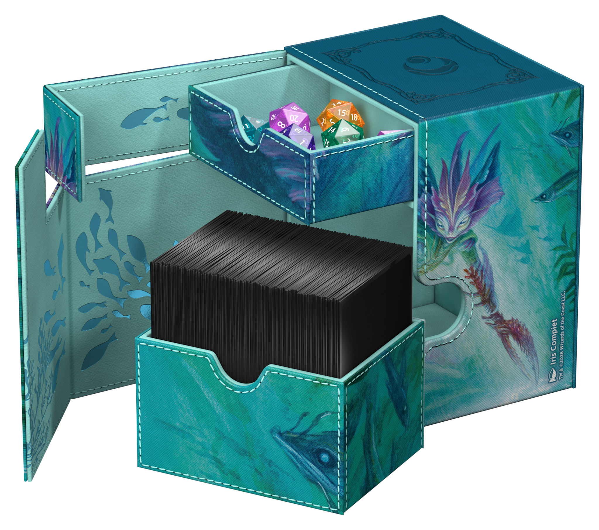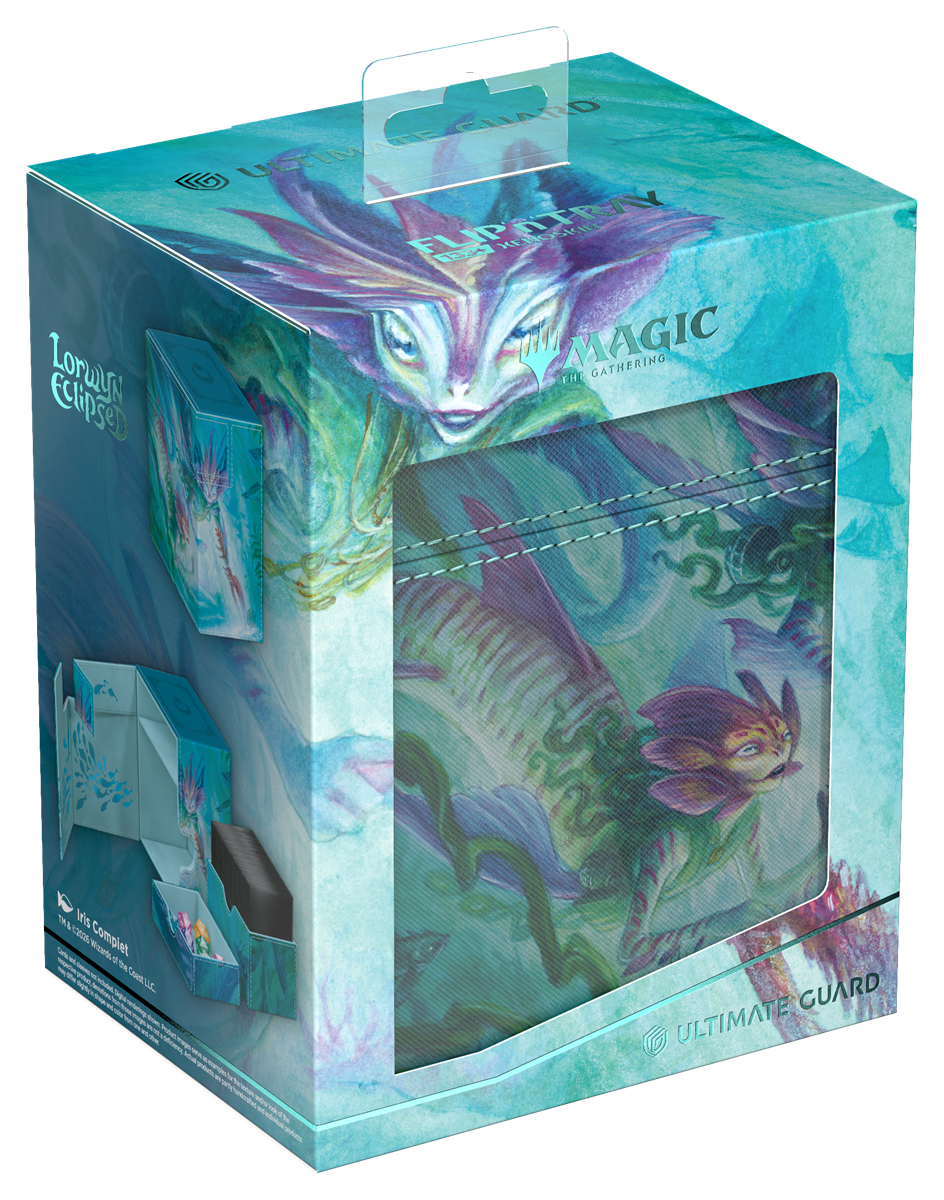 Le Flip'n'Tray 133+ Xenoskin est une boîte de jeu TCG de haute qualité qui offre une protection de carte haut de gamme grâce à son matériau Xenoskin résistant, sa doublure intérieure en microfibre et sa fermeture magnétique puissante. La boîte de jeu dispose d’un plateau d’accessoires intégré et amovible pour les dés qui peut être consulté indépendamment et est imprimée en couleur avec des illustrations sous licence officielle de la prochaine extension de Magic : The Gathering, « Lorwyn Eclipsed ». Le Flip’n’Tray 133+ Xenoskin est optimisé pour contenir 133 cartes à double pochette ou 160 cartes à pochette simple dans les pochettes Ultimate Guard.